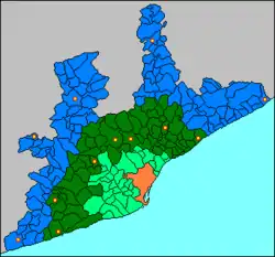 - Third Zone: considered territory of consolidated expansion. In this one the expansion passes to be of radial type, spreading across fluvial corridors or depressions, as in case of Manresa, Igualada and Vic, or continuing the coast, as in case of Blanes and El Vendrell.
