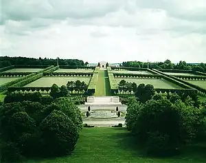 The Meuse-Argonne American Cemetery (French: Cimetière Américain (Meuse-Argonne)) is a 130.5-acre (52.8 ha) World War I cemetery in France. It is located east of the village of Romagne-sous-Montfaucon in Meuse. The cemetery contains the largest number of American military dead in Europe (14,246),[1] most of whom lost their lives during the Meuse-Argonne Offensive and were buried there.[2] The cemetery consists of eight sections behind a large central reflection pool. Beyond the grave sections is a chapel which is decorated with stained glass windows depicting American units' insignias. Along the walls of the chapel area are the tablets of the missing which include the names of those soldiers who fought in the region and in northern Russia, but have no known grave. It also includes the Meuse-Argonne American Memorial. This cemetery is maintained by the American Battle Monuments Commission. It is open daily to the public from 9:00 a.m. to 5:00 p.m. The cemetery is closed January 1 and December 25, but is open on all other holidays.