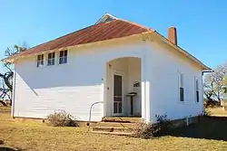 Four buildings have served as the school. Erected on land owned by local resident Fritz Lochte, the original structure was a 96 square feet (8.9 m2) shingle-roofed log cabin. In the post-Civil War years, enrollment included students whose parents had been slaves on an area cotton plantation.[3][4] On the same property, the log cabin was replaced by a larger stone structure in the 1880s. In 1897, local resident Louis Bonn deeded an acre of his land over to the school. A new 1-1/2 story frame structure was erected to house the school. The current building was the fourth building to serve as the school. It was erected in 1931.[2][5]