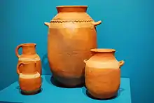 The making of earthenware began to replace stone utensils in Mexico began around the Purrón period (2300–1500 BCE). Many of these first ceramics were gourd or squash shaped, a carry over from when these vegetables were used to carry liquids.[1] This earthenware developed into a pottery tradition that mostly used clay thinly coated with a fine clay slip. Most clays in Mexico need temper to regulate water absorption, with one significant exception being the clay used in the Fine Orangeware of the Gulf Coast.[2]