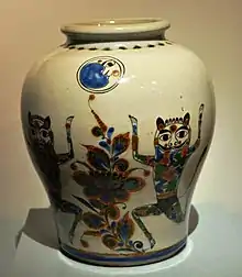 Betus pottery is characterized by vibrant colors that give the ceramics a whimsical look. This style derives its name from the betus oil the clayware is immersed in before it is fired. The oil, which is made of a resin extracted from pine trees, gives the painted pottery a brilliant sheen.[45]