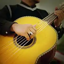 - Randy Meisner of the Eagles also plays the guitarrón on the track "New Kid in Town" from the album Hotel California (1976; in the credits the name of the instrument is anglicized to "guitarone").[2]