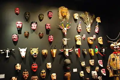 Masks in Mexico vary tremendously, with masks for the same dances changing from once village to the next.[9] These mask depict human beings, including famous people, animals, supernatural beings, abstract concepts, aliens and fantastic creatures. Some masks combine elements from different categories.[6][23][45]