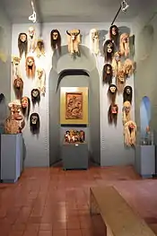 Traditional masks are a dancer's prized possession.[33] Most dancers try to keep their mask in new condition and will take masks in to be cleaned and repainted.[34] In a number of communities, such as the Chontals in Tabasco, masks are generally kept in the local church when not in use. At the other end of the spectrum, the masking, wearing and destruction of a mask is part of Holy Week rituals among the Cora, Yaqui and Mayo. The Cora destroy their papier-mâché masks by immersing them in a local river while the Yaqui and Mayo burn them. In both cases, it is an act of purification.[13][35][36]