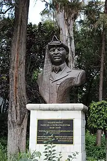 In 2009, Foreign Minister Riyad al-Maliki paid a visit to Mexico, becoming the first Palestinian foreign minister to do so.[7] In 2011, Mexico abstained from voting for allowing Palestine to be a member of UNESCO.[8] In 2012, Mexico voted in favor of Palestine becoming an observer state at the United Nations General Assembly, an upgrade from non-state observer.[9] In June 2011, a statue of former President of the Palestinian National Authority, Yasser Arafat, was unveiled in Mexico City.[10] In 2013, the Mexican Congress installed a section in its building to 'Mexico-Palestine Friendship.'[1] During multiple conflicts between Israel and Palestine; Mexico has remained neutral and has asked that both parties cease fighting and continue with the peace process.[11]