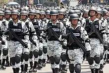 The National Guard (Spanish: Guardia Nacional) is the national gendarmerie of Mexico, created in 2019 by absorbing units and officers from the Federal Police, Military Police, and Naval Police.[1][2]