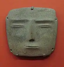 Mezcala-style sculpture is characterised by abstract facial features, suggested by lines and differences in texture.[3] The sculptural style of the Mezcala culture may have been influenced by the Olmecs. In turn, it may have influenced the development of sculpture at the Classic-period metropolis of Teotihuacan in the Valley of Mexico.[1]