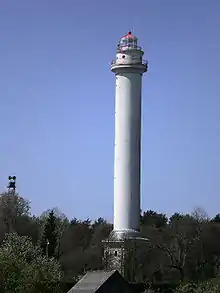 Miķeļbāka or Miķeļtornis is the tallest lighthouse in Latvia. It is located in the village of Miķeļtornis, Tārgale parish, Ventspils Municipality; about 34 kilometres (21 mi) northeast of Ventspils.