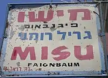 In 1960, the Romanian-Israeli couple Mișu and Sara Feigenbaum founded a delicatessen on HaMered Street in Jaffa, which later became a Romanian grill restaurant under the name "Mișu".[1] The "Mișu" restaurant operated at 5 HaMered Street for about 25 years,[2] and then moved to 7 Raziel Street in Jaffa,[3] where it operated for another 30 years until its closure in the summer of 2015.