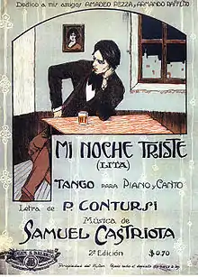 "Mi noche triste" ('My sad night') was the first tango the singer Carlos Gardel recorded. Pascual Contursi wrote the lyrics and Samuel Castriota the music. In 1952 it was the basis of a film of the same name by Lucas Demare.[1]