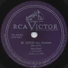 "Mi saoco" is a son montuno written and performed by Cuban singer Benny Moré. It was recorded in February 1955 and released as a single by RCA Victor later that year.[1][2] Moré's recording featured his Banda Gigante with Eduardo Cabrera "Cabrerita" on piano and a large horn section featuring Santiago Peñalver on saxophone. The song became a staple of Moré's live repertoire, and one of his performances was filmed for television and later shown on BBC Arena in 1984 and 1986.[3] That performance features Generoso Jiménez on trombone, who joined the Banda Gigante in April 1955, after the original studio recording.[2]