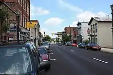 The city's downtown area is home to many small stores and historic buildings. Several restaurants are also there including the original TJ Chumps,[21] and other local and national chain restaurants. The Hamburger Wagon is on Market Square.[22] Other historical buildings downtown include the Baum Opera House, Gebhart Tavern, and Library Park.[23]