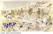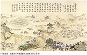Hunan was the main area of fighting, with some taking place in Guizhou. The Qing dynasty sent banner troops, Green Standard battalions and mobilized local militias and self-defence units. The lands of rebellious Miao were confiscated, to punish them and to increase the power of state; this action, however, provoked further conflicts, because new Han landowners ruthlessly exploited their Miao tenants. On the pacified territories forts and military colonies were set up, and Miao and Chinese territories were separated by the wall with watchtowers. Still, it took eleven years to finally quell the rebellion.[2] Relocating Green Standard troops from Hubei to Hunan in 1795, to deal with the Miao, facilitated the White Lotus Rebellion, because of the diminished control in the northern province.[5]