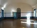 At the age of 22, Burnett changed the original layout of Pleasant Hill, much of which was on a north-south axis.[1] He reoriented the main road to run east-west, and designed and oversaw the construction of three new dwelling houses along it. The first two were brick structures home to the East and West Families, built in 1817 and 1821, respectively.[1] The third, construction of which began in 1824 and ended ten years later, was the dwelling of the Center Family.[1] Built of white limestone, the building is 55 by 60 feet with an ell of 34 by 85 feet.[1] Besides the three dwellings, Burnett designed the Pleasant Hill Shakers' Meeting House in 1820. A white clapboard structure, it is 60 by 44 feet.[1]
