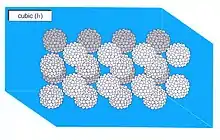 A micellar cubic phase is a lyotropic liquid crystal phase formed when the concentration of micelles dispersed in a solvent (usually water) is sufficiently high that they are forced to pack into a structure having long-ranged positional (translational) order. For example, spherical micelles a subic packing of a body-centred cubic lattice. Normal topology micellar cubic phases, denoted by the symbol I1, are the first lyotropic liquid crystalline phases that are formed by type I amphiphiles. The amphiphiles' hydrocarbon tails are contained on the inside of the micelle and hence the polar-apolar interface of the aggregates has a positive mean curvature, by definition (it curves away from the polar phase). Inverse topology micellar cubic phases (such as the Fd3m phase) are observed for some type II amphiphiles at very high amphiphile concentrations. These aggregates, in which water is the minority phase, have a polar-apolar interface with a negative mean curvature. The structures of the normal topology micellar cubic phases that are formed by some types of amphiphiles (e.g. the oligoethyleneoxide monoalkyl ether series of non-ionic surfactants are the subject of debate. Micellar cubic phases are isotropic phases, but are distinguished from micellar solutions by their very high viscosity. When thin film samples of micellar cubic phases are viewed under a polarising microscope they appear dark and featureless. Small air bubbles trapped in these preparations tend to appear highly distorted and occasionally have faceted surfaces.