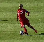 The arrival of Spanish playmaker Victor Vázquez in midfield at the beginning of the 2017 season saw less of a burden placed on Bradley and star forward Sebastian Giovinco to create goalscoring opportunities for Toronto; furthermore, Greg Vanney's switch in tactics from a 4–4–2 diamond to a 3–5–2 formation often saw Bradley occupy more of a supporting role in midfield, which left the Spaniard free to take on the majority of playmaking duties, although the midfield duo often switched positions and effectively shared the team's defensive and creative responsibilities, forming a notable partnership throughout the season.[29][30][31][32] On June 27, Toronto defeated Montreal 2–1 at home in the second leg of the 2017 Canadian Championship final to capture the title for the second consecutive season, edging Montreal 3–2 on aggregate.[33] On September 30, 2017, Bradley won his first Supporters' Shield with a 4–2 home win over New York Red Bulls, to clinch top of the league with the most points that season.[34] On December 9, 2017, Bradley helped Toronto defeat Seattle 2–0 in the 2017 MLS Cup at BMO Field, to lift the title for the first time in the club's history, and complete an unprecedented domestic treble.[35]
