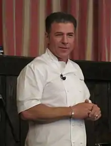 Michael Chiarello (born January 26, 1962) is an American celebrity chef specializing in Italian-influenced California cuisine.[1] He hosts the cooking show Easy Entertaining with Michael Chiarello on Food Network[2] and hosts NapaStyle on Fine Living Network. Chiarello owns a winery called Chiarello Family Vineyards, located in Yountville, CA. He is also the owner of Coqueta, which has two locations: one in Napa Valley, California, and one in San Francisco, California. Along with Coqueta, he owns and cooks for Bottega, located in Napa Valley.[3] Chiarello also owned NapaStyle in Yountville, CA which sold a "selection of exclusive drinkware, serveware, designer tabletop pieces, and more", but closed on January 4, 2016.[4][5] He was a competitor on the fourth season of The Next Iron Chef. In spring 2013, Chiarello opened Coqueta, a tapas restaurant on San Francisco's waterfront. In March 2016, two former employees filed lawsuits alleging sexual harassment and labor law violations; the sexual harassment lawsuit was settled in 2017.[6]