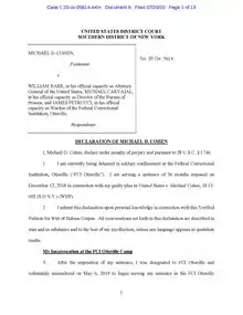 - Moreno, J. Edward (April 16, 2020). "Michael Cohen to be released early from prison amid coronavirus pandemic: report". Archived from the original on December 8, 2020. Retrieved April 17, 2020.