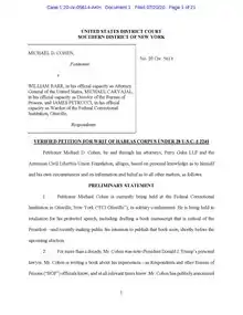 - Feuer, Alan; Weiser, Benjamin (July 21, 2020). "Michael Cohen Claims in Suit He Was Imprisoned to Stop Trump Book". The New York Times. Archived from the original on December 18, 2020. Retrieved July 23, 2020.