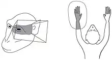Each multisensory neuron responded to a touch within a specific "tactile receptive field" on the body surface. Each neuron also responded to a visual stimulus near or approaching the tactile receptive field. The "visual receptive field" was therefore a region of nearby space affixed to the relevant body part. Some neurons responded to sound sources near the tactile receptive field.[7] Some neurons also responded mnemonically, becoming active when a part of the body moved through space and approached the remembered location of an object in the dark.[8] The activity of these multisensory neurons therefore signaled the presence of an object near or touching a part of the body, regardless of whether the object was felt, seen, heard, or remembered.