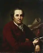 In his later years, Huber became an art historian.[28] He translated Johann Joachim Winckelmann's 1764 History of Art in Antiquity from German into French, expanded the work and included a biography of the author; it appeared in three volumes in 1781.[2][29] It plays an important role in Winckelmann's reception in France.[30] Huber had a collection of copper engravings and used it for teaching; the young Goethe was one of his students.[28] He edited several catalogues of engravings and wrote a related nine-volume work that was translated from his French manuscript and published as Handbuch für Kunstliebhaber und Sammler über die vornehmsten Kupferstecher und ihre Werke: vom Anfange dieser Kunst bis auf gegenwärtige Zeit ('Handbook for art lovers and collectors about the most noble copper engravers and their works: from the beginning of this art to the present time') from 1796 to 1804.[2][28] A general theory of art was included in the work.[28]