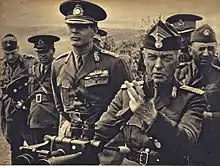 In 1944, World War II was going badly for the Axis powers, but the military dictator Prime Minister Marshal Ion Antonescu was still in control of Romania. By August 1944, the Soviet conquest of Romania had become inevitable, and was expected in a few months.[13] On 23 August 1944, Michael joined the pro-Allies politicians, a number of army officers, and armed Communist-led civilians[14] in staging a coup against Antonescu. King Michael ordered his arrest by the Royal Palace Guard. On the same night, the new Prime Minister, Lt. General Constantin Sănătescu— appointed by King Michael—gave custody of Antonescu to the communists (in spite of alleged instructions to the contrary by the King), and the latter delivered him to the Soviets on 1 September.[15] In a radio broadcast to the Romanian nation and army, Michael issued a cease-fire just as the Red Army was penetrating the Moldavian front,[14] proclaimed Romania's loyalty to the Allies, announced the acceptance of the armistice offered by the United Kingdom, the United States, and the USSR, and declared war on Germany.[16] However, this did not avert a rapid Soviet occupation and capture of about 130,000 Romanian soldiers, who were transported to the Soviet Union where many perished in prison camps.[14]