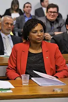 ![]() Former professional footballer Mariléia dos Santos (a.k.a. Michael Jackson) at the Comissão de Educação, Cultura e Esporte of the Brazilian Federal Senate on 27 May 2015 | |||