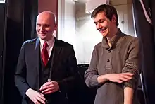 In February 2009, Marshall, Mike Hall and Colin Harris founded the Merseyside Skeptics Society.[6] He commented that skepticism is "not about just saying 'no' to things, it's about thinking about them. And we use the American spelling – skeptic – because, in the States, the word isn't as strongly linked to cynicism. It's not seen as being as negative as it is over here."[9] In July that year, they launched the podcast Skeptics with a K,[10] which Marshall described as "a fairly-shambolic, overly-enthusiastic and snarky mix of science, skepticism and sarcasm".[6] The idea for SwaK came from the conversations Hall and Marsh were having in the pub about news and ideas, such as a homoeopathy overdose,[11] that they wanted to share with a wider audience.[12]