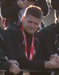 Ahead of the 2020–21 season, Nelson made new signings, with a help from the "Impact of the Future Fund" and "the 1899 Club" support groups and praised the groups for their role in helping him bring in new players.[80] However, Blyth Spartans struggled in the league, winning only once in fourteen league matches before the season was ended early because of the COVID-19 pandemic for the second time.[81] During the 2020–21 season, he once came out of retirement as a replacement for the suspended Matthew Elsdon and played in the FA Cup match against Marske United, as the club lost 1–0.[82] On 17 November 2021, with Blyth in the relegation zone of the National League North, Nelson left the club by mutual consent.[83]