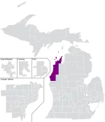Michigan's 101st House of Representatives district (also referred to as Michigan's 101st House district) is a legislative district within the Michigan House of Representatives located in parts of Lake, Mason, and Oceana counties, as well as all of Newaygo and Wexford counties.[3] The district was created in 1965, when the Michigan House of Representatives district naming scheme changed from a county-based system to a numerical one.[4]