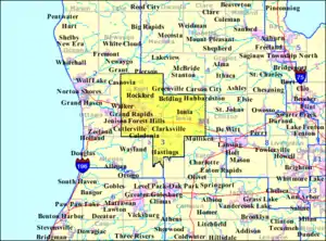 Michigan's 3rd congressional district is a U.S. congressional district in West Michigan. From 2003 to 2013, it consisted of the counties of Barry and Ionia, as well as all except the northwestern portion of Kent, including the city of Grand Rapids. In 2012 redistricting, the district was extended to Battle Creek. In 2022, the district was condensed to the greater Grand Rapids and Muskegon areas, including portions of Kent, Muskegon and Ottawa counties. Redistricting removed Barry, Calhoun and Ionia counties.[5]