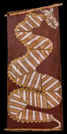 - Ngalyod the Rainbow Serpent (1980), natural pigments on bark