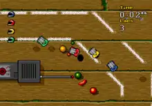 Gameplay is identical to the previous instalment: races are viewed from a top-down perspective, and players race in environments such as bathrooms and pool tables (many tracks contain obstacles such as common household objects[1]) in vehicles including powerboats and helicopters. The game adds sixteen vehicles.[2]
