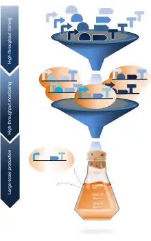 Microbial cell factory is an approach to bioengineering which considers microbial cells as a production facility in which the optimization process largely depends on metabolic engineering.[1] MCFs is a derivation of cell factories, which are engineered microbes and plant cells.[2] In 1980s and 1990s, MCFs were originally conceived to improve productivity of cellular systems and metabolite yields through strain engineering.[3] A MCF develops native and nonnative metabolites through targeted strain design.[4] In addition, MCFs can shorten the synthesis cycle while reducing the difficulty of product separation.