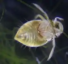 The male of this species produces its underwater courtship song by stridulating a ridge on its penis across corrugations on its abdomen. The area involved measures only 50 micrometres across, or about the thickness of a human hair. A team of biologists and sound engineers from France and Scotland have recorded M. scholtzi producing sound up to 99.2 decibels, a volume comparable to a passing freight train.[3] The noise was so unexpectedly loud that the engineers checked the calibration of their instruments. It is classified by Guinness World Records as the loudest penis.[4] Almost all volume is lost when sound moves from water to air, but even so remains audible to humans walking along the pond shore. This species is considered the loudest of all animals for its size.[3] Despite knowing the mechanism of its sound production, researchers are still mystified by the volume produced and feel that once the process is understood, it could open up a useful avenue in ultrasonics.[5]