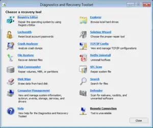 Screenshot of Microsoft Diagnostics and Recovery Toolset, one of the components of this software suite