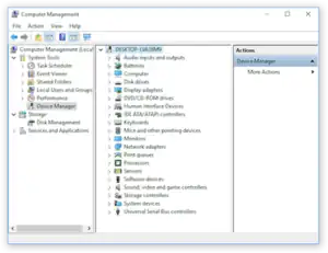 ![]() Windows Management Console running in Windows 10, with Device Manager snap-in loaded | |