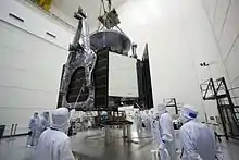 MWR was launched aboard the Juno spacecraft on August 5, 2011 (UTC) from Cape Canaveral, USA, as part of the New Frontiers program,[6] and after an interplanetary journey that including a swingby of Earth, entered a polar orbit of Jupiter on July 5, 2016 (UTC),[7][8]