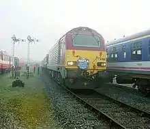 In December 1994 Class 20 diesels 20069 and 20206 were moved by road from County School to the truncated railhead at Dereham. On Christmas Eve, with permission from British Rail, both locomotives made their way along the line to Yaxham station.[35]