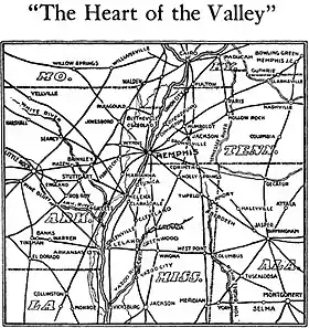 Although the region has no formally established boundaries, the designation has been used by various businesses and institutions generally operating in the region. In 1920, journalist C.P.J. Mooney equated the region with the Mississippi River Valley, centered in Memphis, and described by advocates as "the richest agricultural region in the world".[3] Mooney delineated the region as "covering West Kentucky, West Tennessee, part of the Tennessee River Valley in Alabama, the northern half of Mississippi, the Eastern half of Arkansas and southeast Missouri".[3]