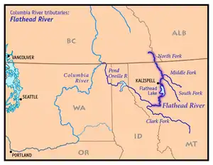 ![]() Map of the Flathead River watershed showing the Middle Fork | |