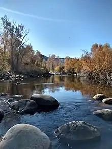 ![]() The Middle Fork Popo Agie River seen from Main Street in Lander Wyoming. | |