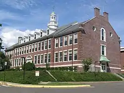 The 1937 school building, a brick Colonial revival structure, sits on a 27.34-acre (110,600 m2)[8] site at 204 Hollow Tree Ridge Road. The building underwent a major, $27 million addition and renovation in the late 1990s, which was completed in 2000.