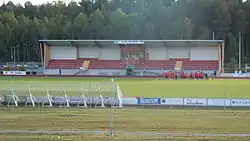 Midgårdsvallen is a Football and Track & Field stadium in Märsta, Sweden and the home stadium for the football team Valsta Syrianska IK. The stadium was opened in 2005. The natural grass pitch measures 105 x 65 meters. Currently the Midgårdsvallen stadium is approved for Superettan, but additional flood lights can be installed for Allsvenskan level. The all-weather tracks has IAAF approved surfaces. Midgårdsvallen has a total capacity of 2,400 spectators.[1] The main stand is covered and seats 400.