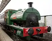 No. 1163 "Whitehead" Peckett 0-4-0ST Built in 1908, "Whitehead" was used in the major Welsh industries. On withdrawal, it was purchased by the Great Western Society and moved to the West Somerset Railway. Arrived at the Midland Railway – Butterley in July 1999.[9] Under Repair[10] Unlined Brunswick Green with the BR Crest. Private Owner. 1908