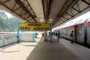 Midnapore railway station is an important railway station on Kharagpur–Bankura–Adra line in Kharagpur railway division of South Eastern Railway zone. It is situated at Midnapore of Paschim Medinipur district in the Indian state of West Bengal. Total 66 trains including express and passengers stop at Midnapore railway station.[5][6]