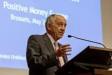 ![]() Miguel Ángel Fernández Ordóñez giving a speech at a conference hosted by Positive Money Europe in Brussels (May 23, 2018) | |