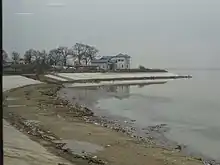 The town stands beside the river Argeș, which at this point is dammed, forming a lake about 5 kilometres (3.1 mi) long. It was created as part of the Danube–Bucharest Canal project and feeds a hydro-electric plant.