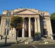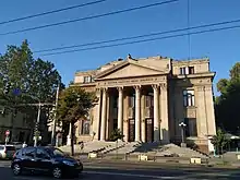 Mihai Eminescu National Theater (Romanian: Teatrul Național „Mihai Eminescu”) is a historical and architectural monument built in neoclassical style located in Central Chișinău, Republic of Moldova. Originally constructed to house various cultural activities in 1931, the purpose of the building and its name changed several times over the years. In 1988 the theater was named in honor of the Romanian poet from Moldavia Mihai Eminescu. The theater hosts plays and concerts.