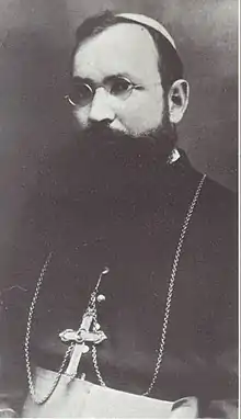 Mihai Robu (10 April 1884 – 27 September 1944) was a Romanian cleric, bishop of the Roman Catholic Diocese of Iași. Born in Săbăoani, Neamț County, He entered the Roman Catholic Theological Institute of Iași in 1894, being ordained deacon in 1906 and priest in 1907. For several years, starting before his priestly ordination, he was in charge of the Iași seminarians. During World War I, when the seminary was closed, he was a parish priest at Văleni, Faraoani and Bacău. In 1920, he returned to teach when the seminary reopened, and was named secretary to Bishop Alexandru Cisar. In 1922, he was named parish priest at Horlești and chaplain at an Iași monastery. In 1925, he was consecrated Bishop of Iași by Cisar. Among his activities were the building of numerous churches, special attention to the seminary and the opening of a new one at Luizi-Călugăra, support for the Catholic press and many visits to parishes in the diocese.[1] In March 1944, due to the approach of the Eastern Front, he closed the seminary and withdrew with the students to Beiuș. Meeting with repression from the German and Hungarian armies, he went to the mountains at Finiș in mid-September. He caught double pneumonia and soon died. Buried in Beiuș, his remains were moved to the old Roman Catholic cathedral in Iași in 1964.[1]